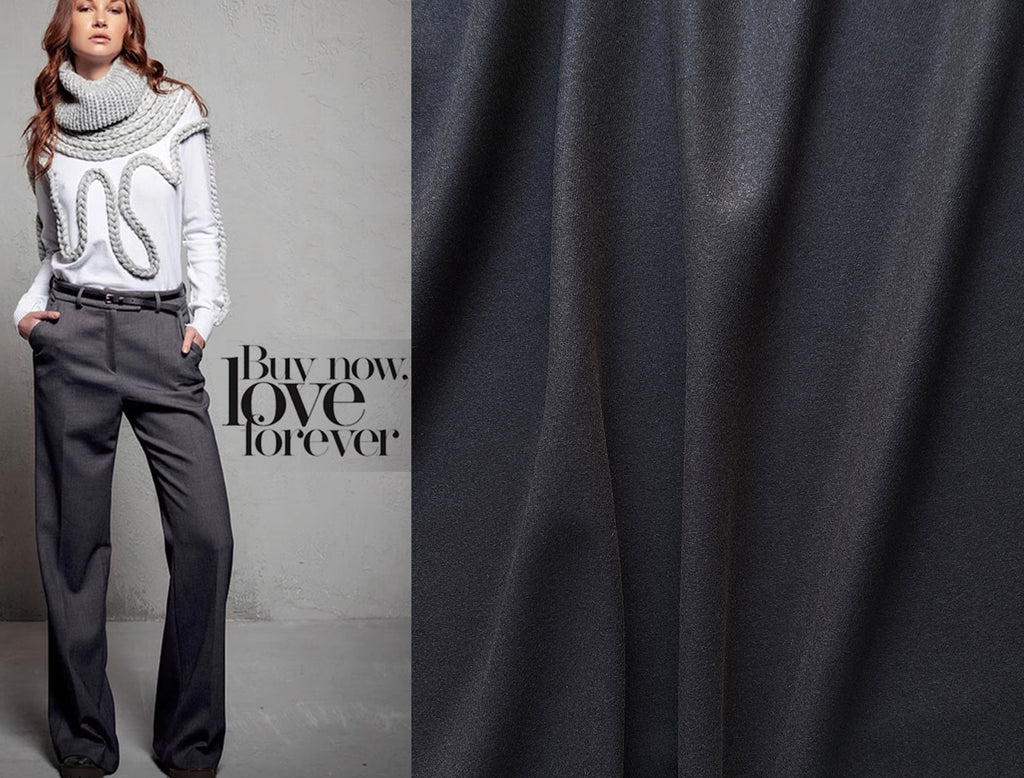Charcoal Grey - Italian Twill Merino Wool - 148 cm Wide.